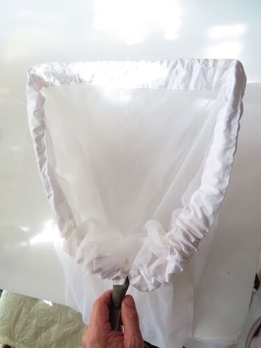 クワガタ採集 専用アミの作成② ゴム紐は網の手元右端から出します。 何故出すかと言うと、網先の幅を調整できるようにするためです。 これで、クワガタムシを落とすのに大切なアミ先の幅が自由に調整できるのです。 アミをとうして完成です。 ゴム紐を出して…